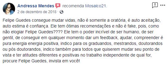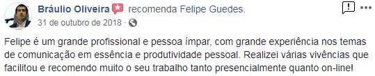 Felipe Guedes trás para esta aula a experiência de ter ministrado mais de 400 palestras nas 4 regiões do país e ter treinado mais de 3.000 profissionais no seu curso imersivo de oratória e domínio emocional, o Comunicação em Essência, reconhecido por transformações surpreendentes geradas em curto período de tempo.
